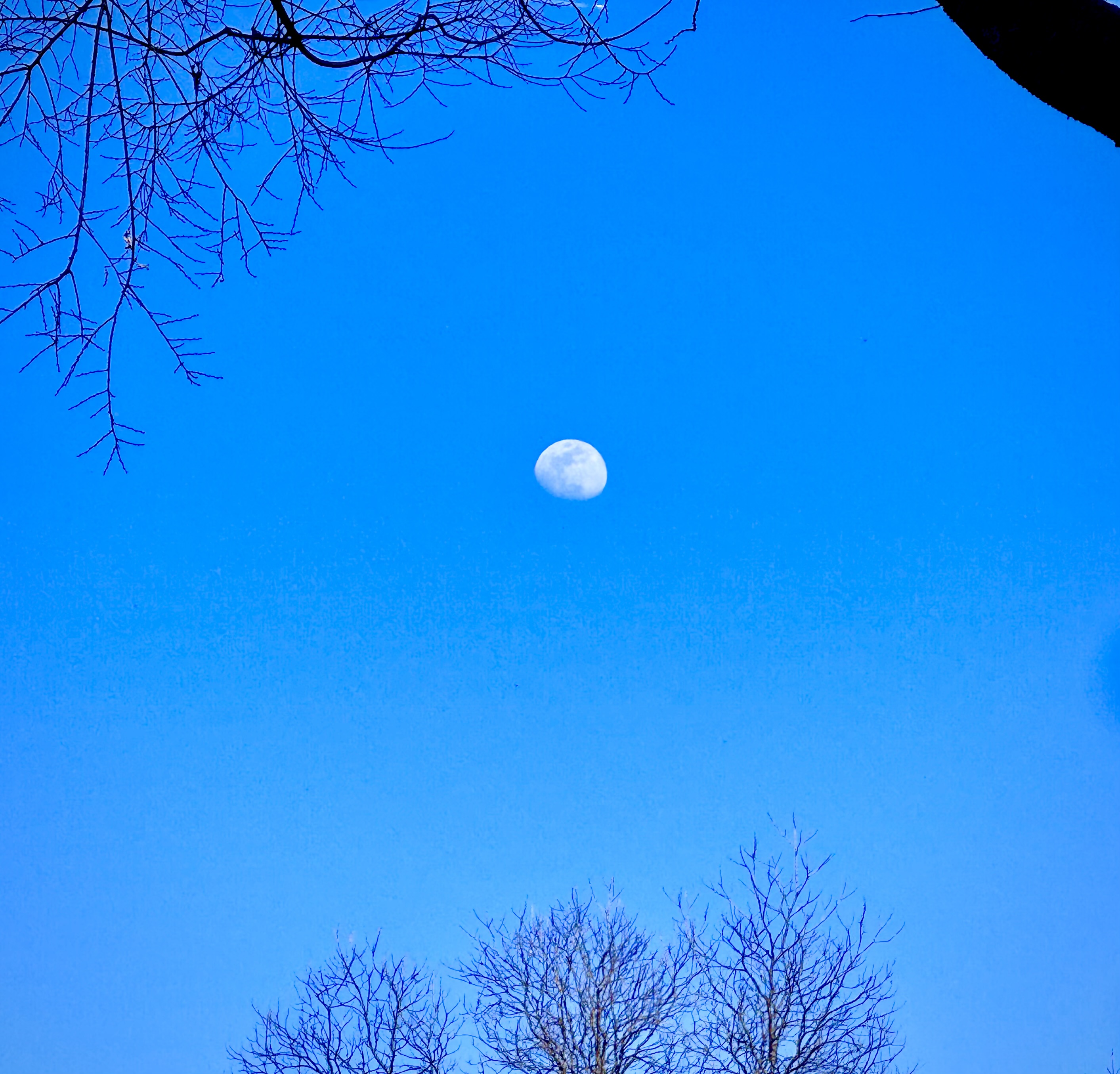 powder blue sky, bare limbs /
