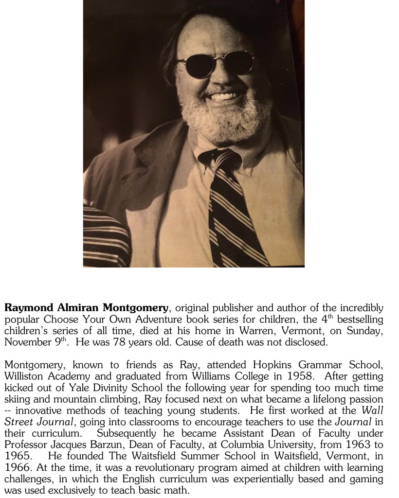 Rest of the obituary: http://www.cyoa.com/pages/r-a-montgomery-1936-2014