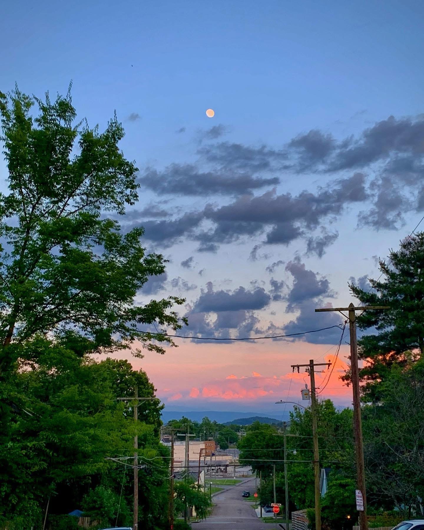 #clouds #sunlight #moon #mountains #evening #photo #poem #poetry #haiku #oldnorthknoxville #davidebooker #june #thursday #060123 #2023 #haiga