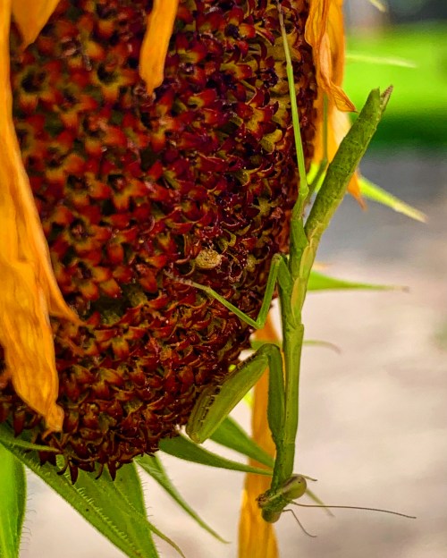 #waits #death #prayingmantis #sunflower #face #photo #poem #poetry #haiku #oldnorthknoxville #davidebooker #august #monday #080723 #2023