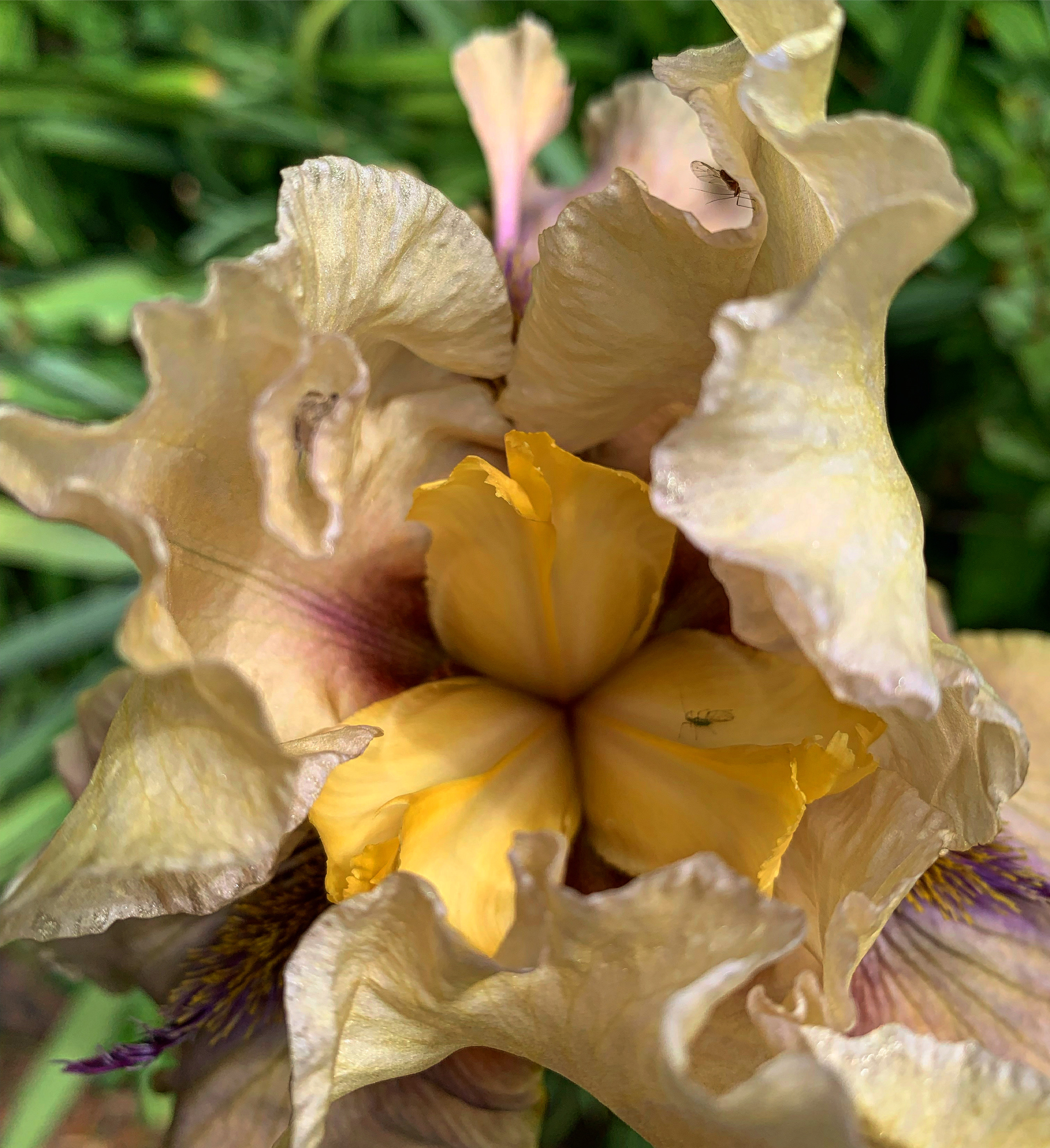 #iris #friday #yellow #cream #folding #unfolding #photo #poem #poetry #haiku #oldnorthknoxville #davidebooker #april #042922 #2022
