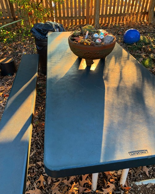 #evening #picnic #table #cat #purrs #haiku #poem #poetry #haiga #photo #oldnorthknoxville #davidebooker #september #monday #090224 #2024