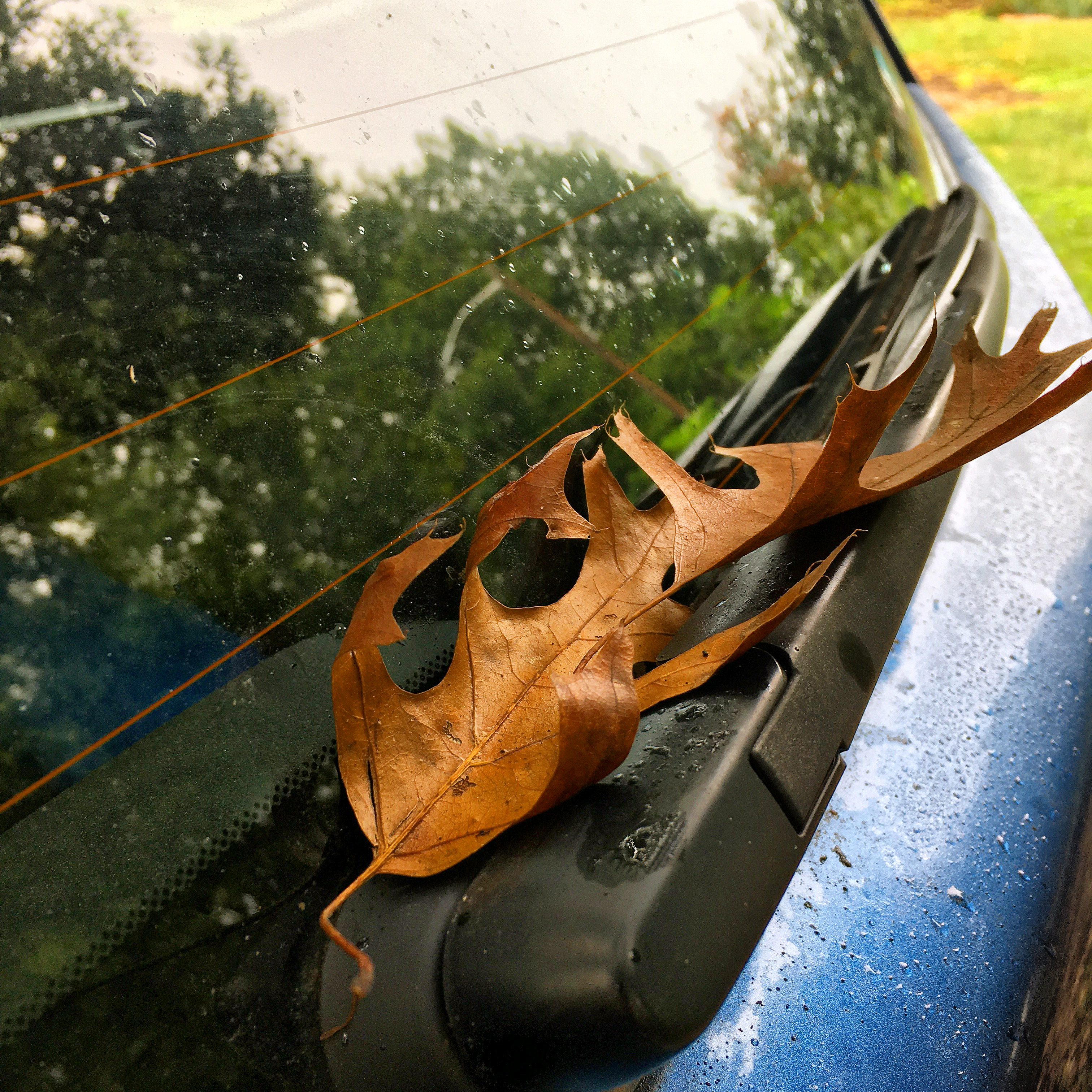 Brown leaves on window, /