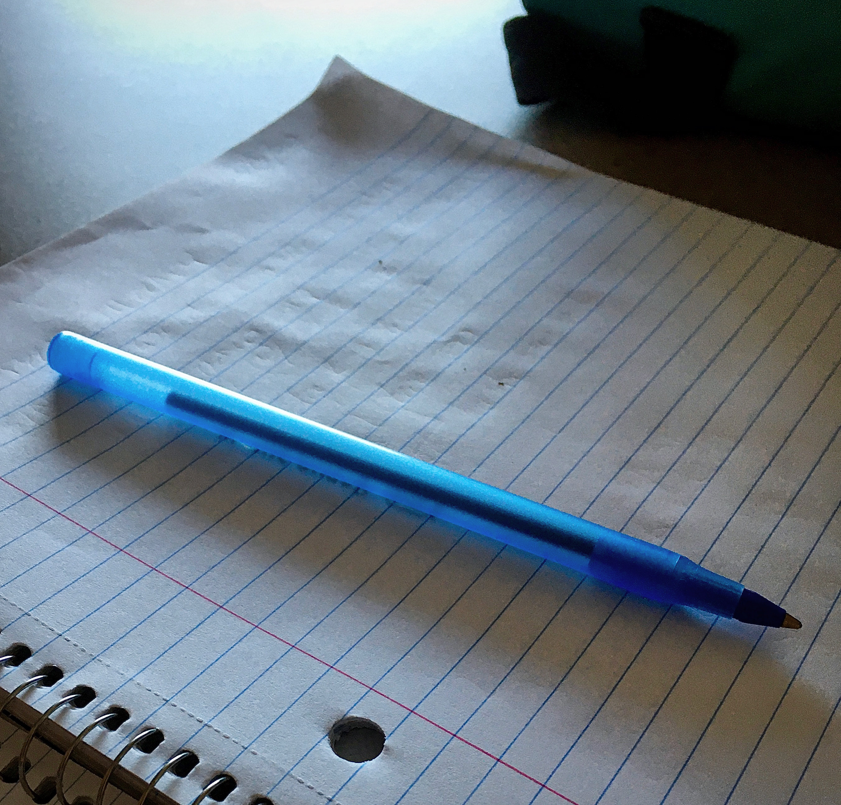 The writer’s pen curls /